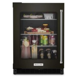 KitchenAid 24″ Undercounter Refrigerator With Glass Door And Shelves With Metallic Accents