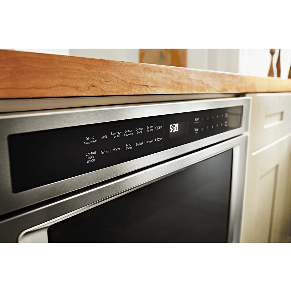 Give your kitchen more room for creativity with an ingenious top-loading microwave oven drawer that installs in your wall or island, saving you valuable countertop space for food preparation. Opening and closing the drawer are one-touch simple. Sensor coo