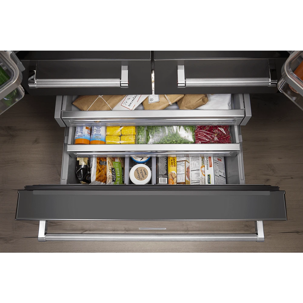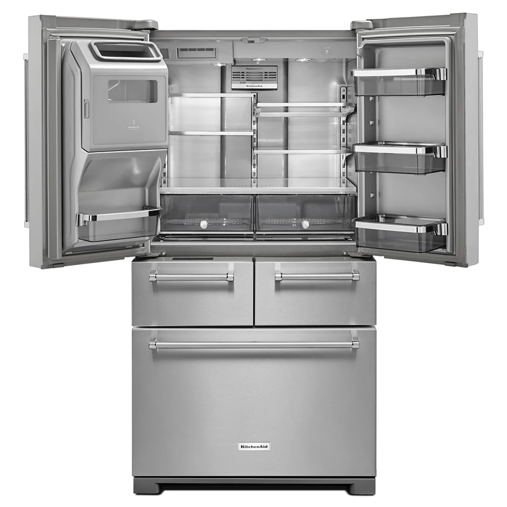 This uniquely versatile, platinum interior refrigerator offers 5 doors, including 2 soft-close drawers, to deliver optimized storage. This refrigerator also features the Preserva® Food Care System which uses two independent cooling systems to help keep fo