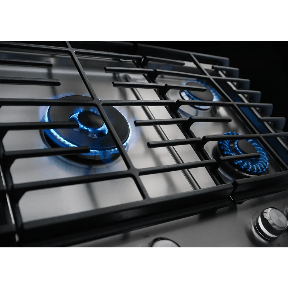 This 30-inch gas cooktop features the exclusive Even-Heat™ Torch Burner with a flame that evenly covers the bottom of cookware to ensure even heating. In addition to the exceptional performance, the cooktop has an enhanced design that includes the CookShield Finish to help protect the cooking surface, and lighted knobs that are a stylish way to let you know the cooktop is on.