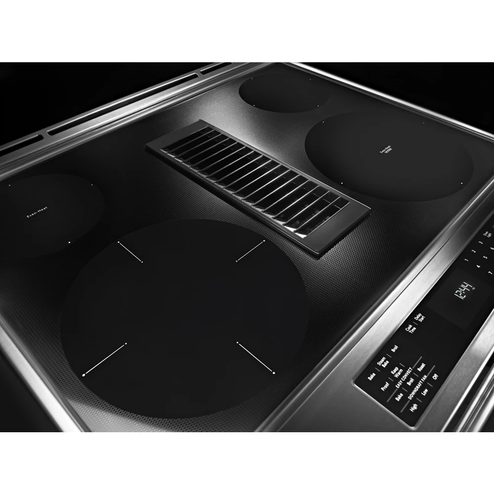 This all-in-one electric range includes Downdraft, which integrates the ventilation system so a separate hood is not needed. Smoke and odors can be removed outside or filtered air can be recirculated inside. This range helps you achieve flawless cooking r