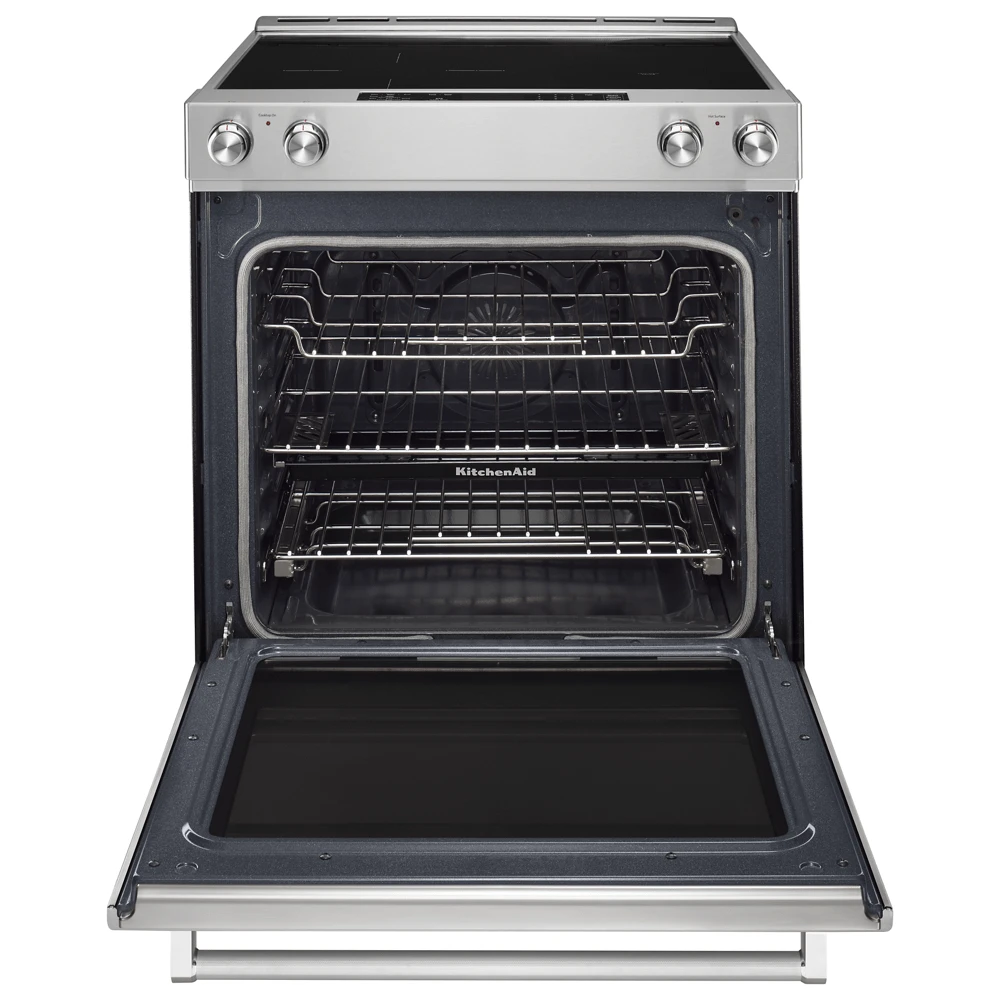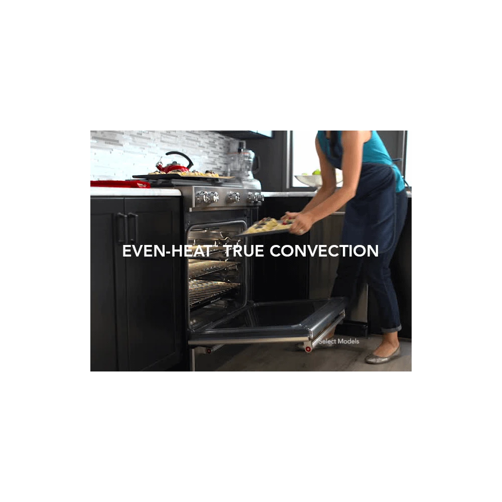 This versatile electric range provides a Baking Drawer that adds more options to the oven. The separate compartment allows you to bake at a different temperature. This range also features Even-Heatâ„¢ True Convection, helping you achieve flawless cooking results. The unique bow-tie design and convection fan ensure the entire oven is heated to, and stays at, the perfect temperature.