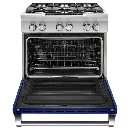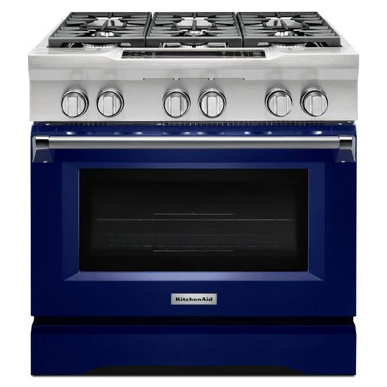 The dual fuel design of this commercial-style range, available in a variety of bold colors, features a gas cooktop with electric oven. Features like two 20K BTU Ultra Power™ Dual-Flame Burners and the Even-Heat™ True Convection System allow passionate cooks to reach their gourmet potential. KitchenAid® commercial-style ranges bring the tools of restaurant chefs into residential kitchens.