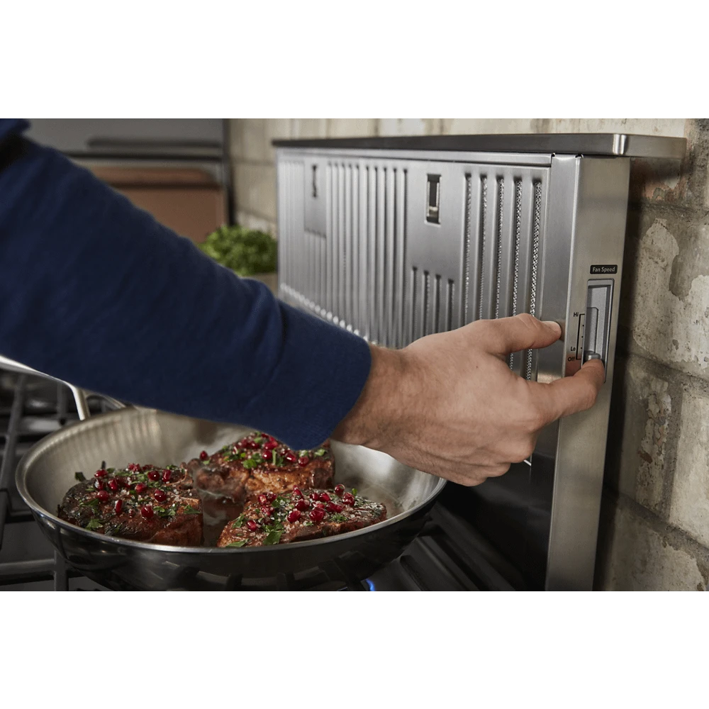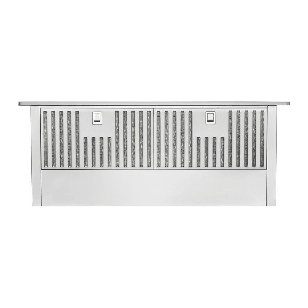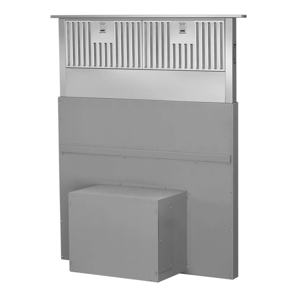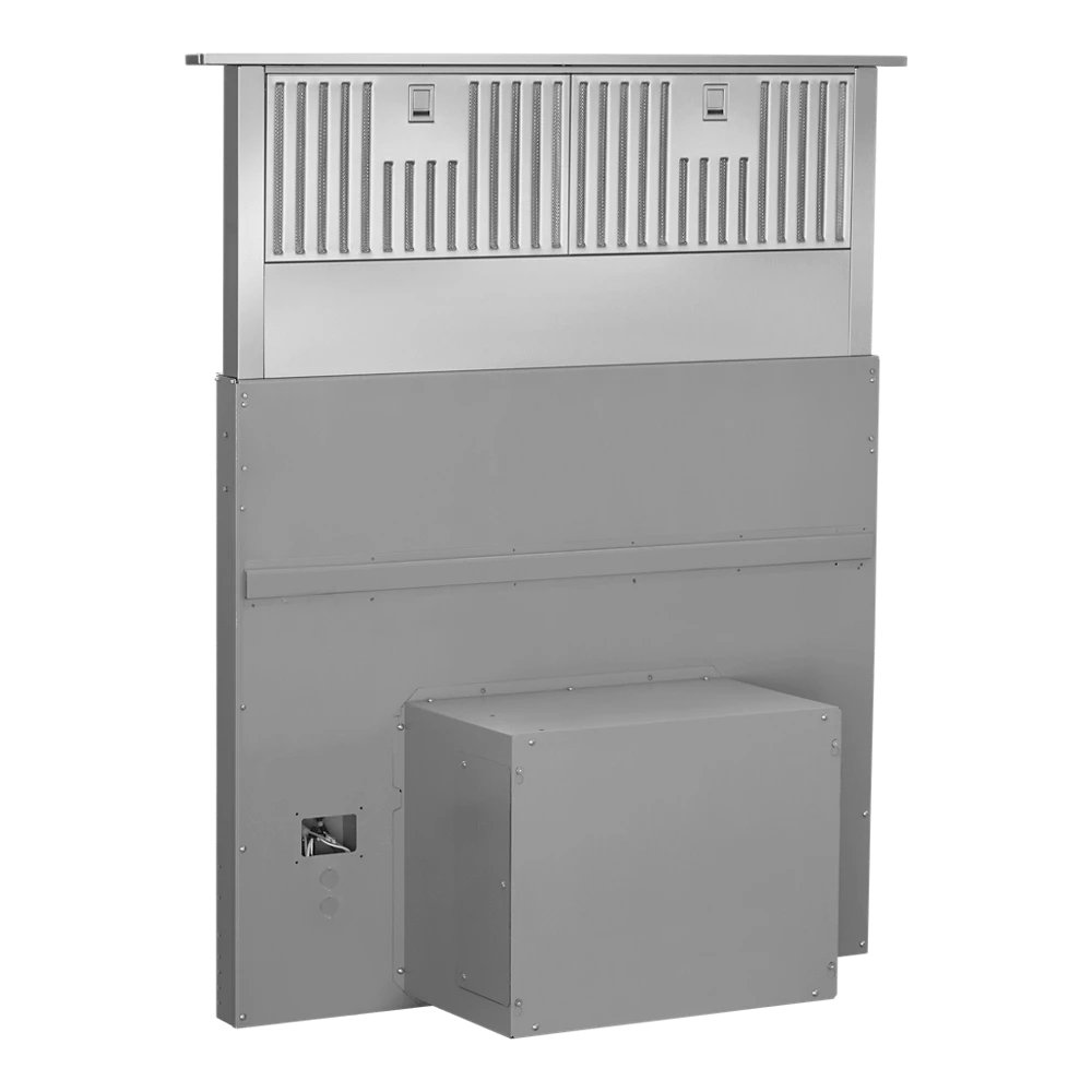 This 36-inch retractable downdraft ventilation system rises 13.5 inches to help filter steam from tall stockpots, and remains flush with the cooking surface when not in use. The 585 CFM Motor Class* ventilation system has the power to provide effective venting for most cooktops or ranges. The system is reversible to help fit in the cabinet space under the vent. *Performance varies based on installation. Resources available at AHAM.org