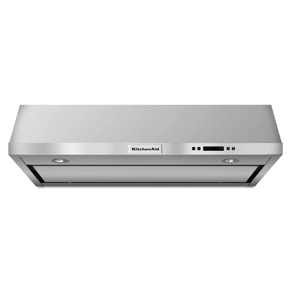 This 36-inch stainless steel ventilation hood allows you to hide ductwork underneath kitchen cabinets. Electronic controls include LED lights that display settings. The powerful, 4-speed motor includes a boost setting to help effectively remove steam from most ranges and cooktops.