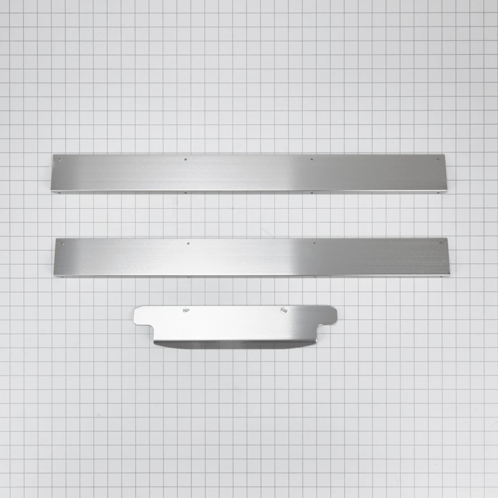 The Ice Maker Trim Kit includes (2) trim pieces, (1) handle, necessary hardware and installation instructions. These stainless steel accessories create a finished, custom look for your 15″ under-the-counter ice maker. A universal kit, these accessories are compatible with many ice maker brands and models; check to see if your model number is compatible. Installing this accessory will require basic hand tools and novice repair experience. You must unplug the ice maker or shut off the house circuit breaker for the appliance before installing this part.
